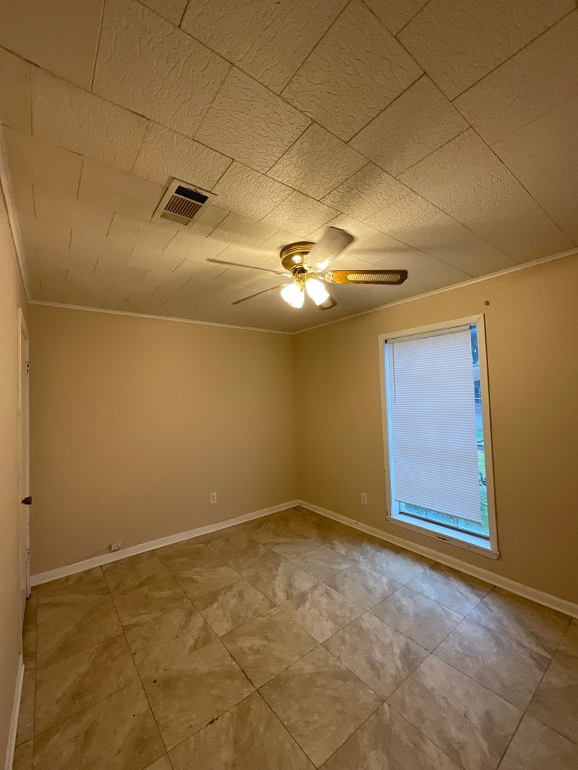 This three-bedroom home offers a comfortable, lived-in feel with a mix of wood floors, vinyl, and carpet throughout. The living room is a good size and opens to a back patio through sliding glass doors, creating an easy flow for everyday living. The kitchen includes a gas range/oven, refrigerator, a picture window for natural light, and a pantry/storage closet, with an attached dining area just steps away. A dedicated utility room provides washer and dryer hookups, and ceiling fans add extra comfort throughout the home. The primary bedroom includes a convenient half bath, while the full bathroom features a tub/shower combo and a large vanity with plenty of storage. Outside, you’ll find a front porch, fenced yard, and a one-car carport. Located in Leesville, this home offers a quick commute to Fort Polk’s main gate. One-year lease term. No pets allowed.