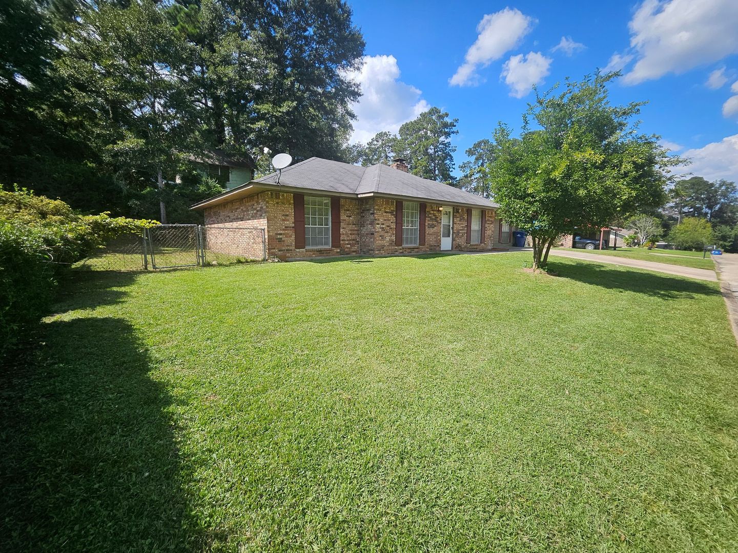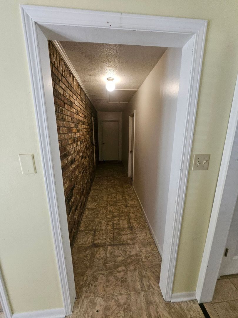 Enjoy the warmth of a wood-burning brick fireplace in the living room and ceiling fans throughout the home for year-round comfort. The open eat-in kitchen boasts ample cabinet space, including a convenient lazy Susan corner cabinet, a large picture window, and essential appliances such as a refrigerator, stove/oven, and dishwasher. A unique brick wall accents the hallway, adding character to the space. The laundry room comes equipped with washer/dryer hookups for added convenience. The home features central electric heating and air conditioning, ensuring comfort throughout the year. Each bedroom offers ample closet space. Step out through the kitchen door to a spacious, fenced-in backyard—ideal for outdoor activities. Conveniently located near Alexandria Hwy, Leesville High School and Junior High and only a 10minute commute to Fort Polk. Note: Outdoor pets are welcome!